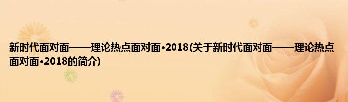 大家好,新时代面对面——理论热点面对面·2018,关于新时代面对面——理论热点面对面·2018的简介很多人还不知道,现在让我们一起来看看吧!