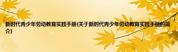 本文关于新时代青少年劳动教育实践手册的简介就讲解完毕,希望对大家有所帮助。