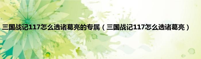 大家好,精选小编来为大家解答以上问题。三国战记117怎么选诸葛亮的专属,三国战记117怎么选诸葛亮很多人还不知道,现在让我们一起来看看吧!