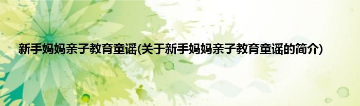 新手妈妈亲子教育童谣(关于新手妈妈亲子教育童谣的简介)