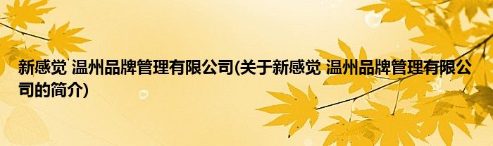 大家好,新感觉 温州品牌管理有限公司,关于新感觉 温州品牌管理有限公司的简介很多人还不知道,现在让我们一起来看看吧!