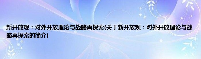 本文关于新开放观:对外开放理论与战略再探索的简介就讲解完毕,希望对大家有所帮助。