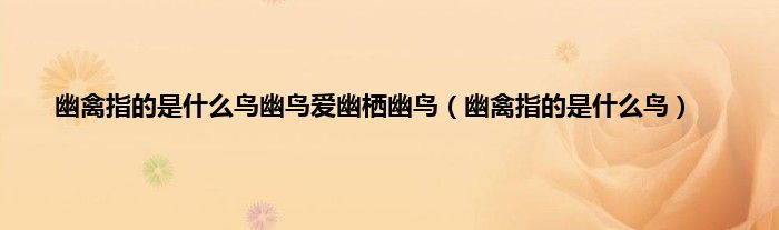 一、 幽禽指的是什么鸟