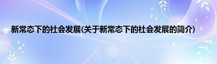 本文关于新常态下的社会发展的简介就讲解完毕,希望对大家有所帮助。
