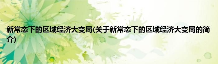 本文关于新常态下的区域经济大变局的简介就讲解完毕,希望对大家有所帮助。