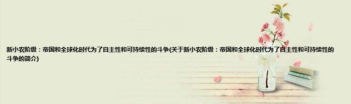 大家好,新小农阶级:帝国和全球化时代为了自主性和可持续性的斗争,关于新小农阶级:帝国和全球化时代为了自主性和可持续性的斗争的简介很多人还不知道,现在让我们一起来看看吧!