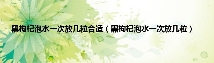 大家好,小科来为大家解答以上问题。黑枸杞泡水一次放几粒合适,黑枸杞泡水一次放几粒很多人还不知道,现在让我们一起来看看吧!