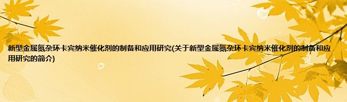 本文关于新型金属氮杂环卡宾纳米催化剂的制备和应用研究的简介就讲解完毕,希望对大家有所帮助。