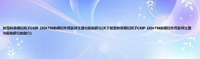 本文关于新型转录调控因子CKIP-1对ATM的调控作用及其生理功能的研究的简介就讲解完毕,希望对大家有所帮助。
