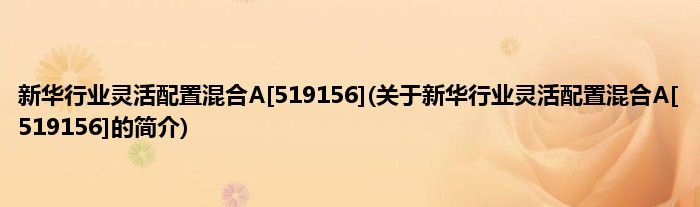 新华行业灵活配置混合A[519156](关于新华行业灵活配置混合A[519156...