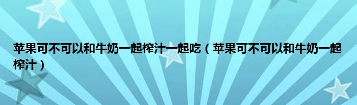 苹果可以和牛奶一起榨汁,牛奶富含矿物质和优质蛋白质,苹果中所含的营养物质可以促进人体对牛奶中矿物质的吸收。一起榨汁还可以清热去火,美容减肥等。但是对于胃不好的人来说,苹果和牛奶一起榨汁会增加胃的负担。