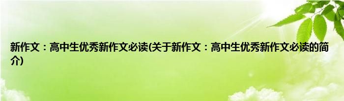 本文关于新作文:高中生优秀新作文必读的简介就讲解完毕,希望对大家有所帮助。
