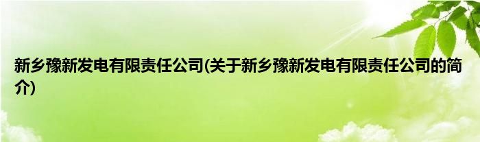 本文关于新乡豫新发电有限责任公司的简介就讲解完毕,希望对大家有所帮助。