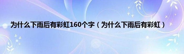 大家好,小科来为大家解答以上问题。为什么下雨后有彩虹160个字,为什么下雨后有彩虹很多人还不知道,现在让我们一起来看看吧!