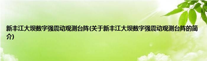 大家好,新丰江大坝数字强震动观测台阵,关于新丰江大坝数字强震动观测台阵的简介很多人还不知道,现在让我们一起来看看吧!