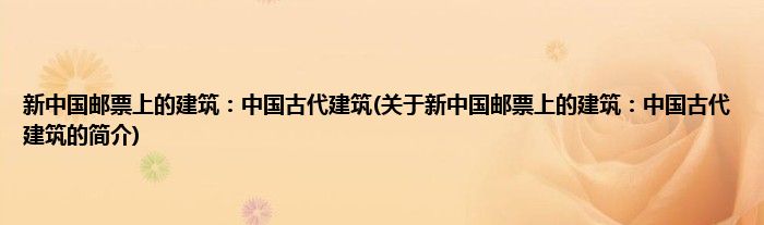 本文关于新中国邮票上的建筑:中国古代建筑的简介就讲解完毕,希望对大家有所帮助。