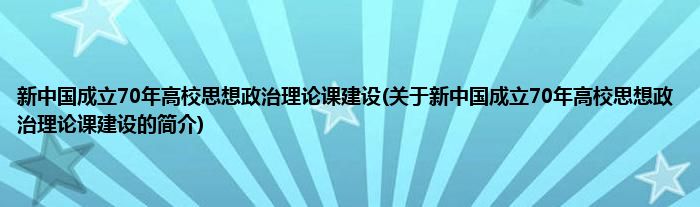 本文关于新中国成立70年高校思想政治理论课建设的简介就讲解完毕,希望对大家有所帮助。