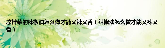 大家好,小科来为大家解答以上问题。凉拌菜的辣椒油怎么做才能又辣又香,辣椒油怎么做才能又辣又香很多人还不知道,现在让我们一起来看看吧!