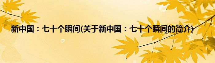 本文关于新中国:七十个瞬间的简介就讲解完毕,希望对大家有所帮助。