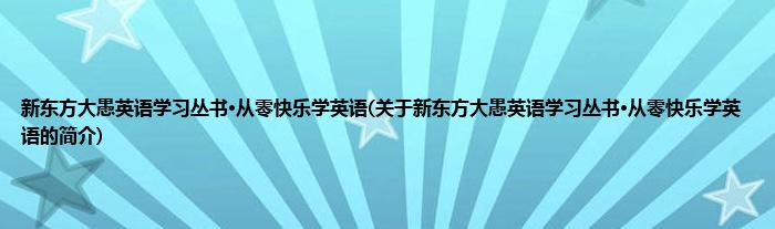 本文关于新东方大愚英语学习丛书·从零快乐学英语的简介就讲解完毕,希望对大家有所帮助。