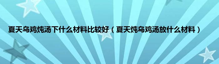 大家好,小科来为大家解答以上问题。夏天乌鸡炖汤下什么材料比较好,夏天炖乌鸡汤放什么材料很多人还不知道,现在让我们一起来看看吧!