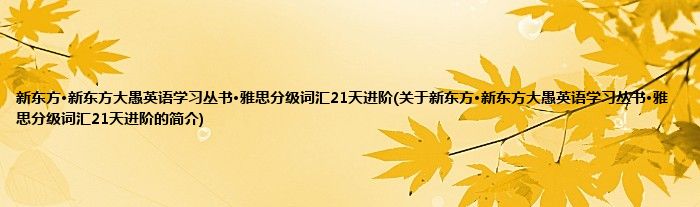 本文关于新东方·新东方大愚英语学习丛书·雅思分级词汇21天进阶的简介就讲解完毕,希望对大家有所帮助。
