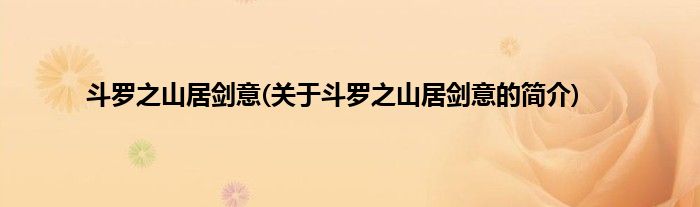本文关于斗罗之山居剑意的简介就讲解完毕,希望对大家有所帮助。