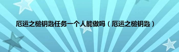 大家好,精选小编来为大家解答以上问题。厄运之槌钥匙任务一个人能做吗,厄运之槌钥匙很多人还不知道,现在让我们一起来看看吧!
