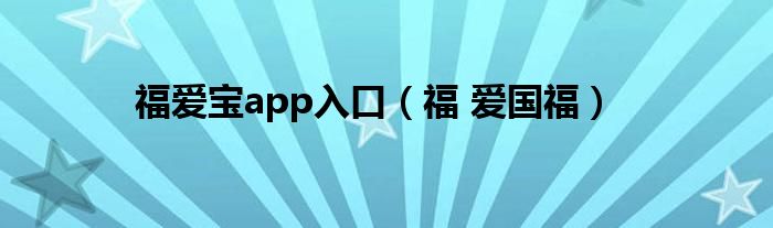 福爱宝app入口(福 爱国福)