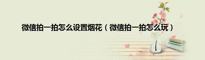 大家好,精选小编来为大家解答以上问题。微信拍一拍怎么设置烟花,微信拍一拍怎么玩很多人还不知道,现在让我们一起来看看吧!