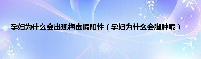 大家好,小科来为大家解答以上问题。孕妇为什么会出现梅毒假阳性,孕妇为什么会脚肿呢很多人还不知道,现在让我们一起来看看吧!