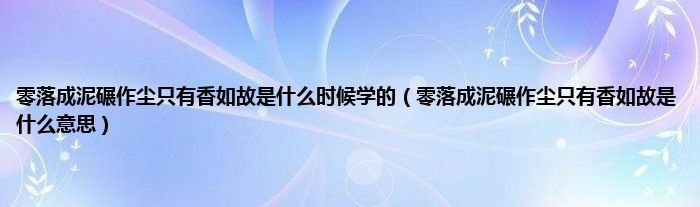 大家好,小常来为大家解答以上问题。零落成泥碾作尘只有香如故是什么时候学的,零落成泥碾作尘只有香如故是什么意思很多人还不知道,现在让我们一起来看看吧!