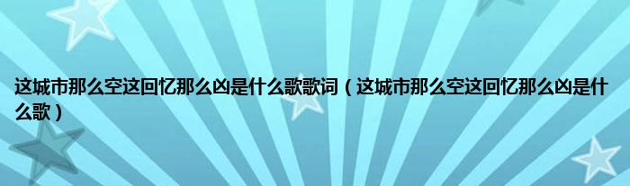 大家好,小常来为大家解答以上问题。这城市那么空这回忆那么凶是什么歌歌词,这城市那么空这回忆那么凶是什么歌很多人还不知道,现在让我们一起来看看吧!