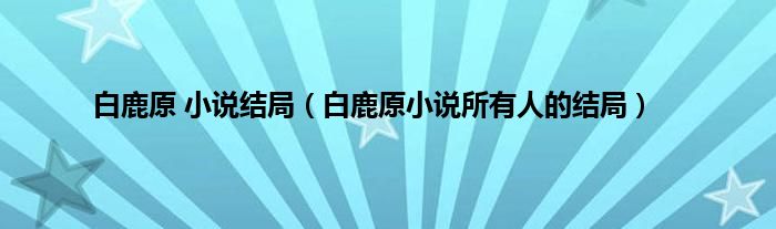 大家好,小常来为大家解答以上问题。白鹿原 小说结局,白鹿原小说所有人的结局很多人还不知道,现在让我们一起来看看吧!