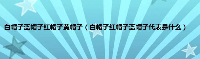 大家好,小常来为大家解答以上问题。白帽子蓝帽子红帽子黄帽子,白帽子红帽子蓝帽子代表是什么很多人还不知道,现在让我们一起来看看吧!