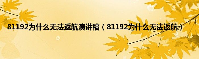 大家好,小常来为大家解答以上问题。81192为什么无法返航演讲稿,81192为什么无法返航很多人还不知道,现在让我们一起来看看吧!