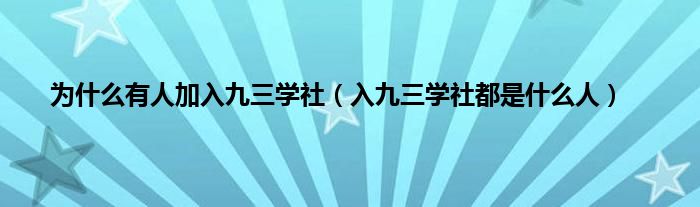 大家好,小常来为大家解答以上问题。为什么有人加入九三学社,入九三学社都是什么人很多人还不知道,现在让我们一起来看看吧!