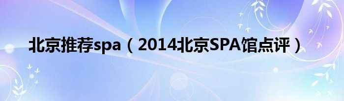 大家好,小科来为大家解答以上问题。北京推荐spa,2014北京SPA馆点评很多人还不知道,现在让我们一起来看看吧!