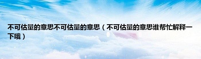 大家好,小常来为大家解答以上问题。不可估量的意思不可估量的意思,不可估量的意思谁帮忙解释一下哦很多人还不知道,现在让我们一起来看看吧!