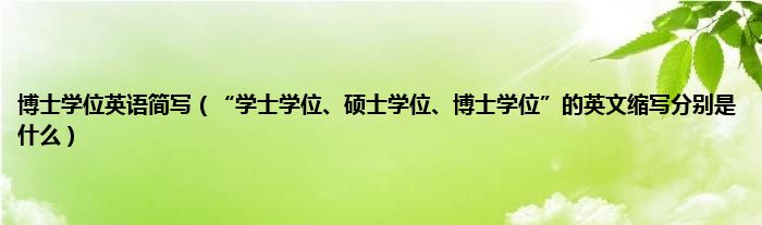 大家好,小常来为大家解答以上问题。博士学位英语简写,“学士学位、硕士学位、博士学位”的英文缩写分别是什么很多人还不知道,现在让我们一起来看看吧!