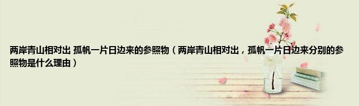 大家好,小常来为大家解答以上问题。两岸青山相对出 孤帆一片日边来的参照物,两岸青山相对出,孤帆一片日边来分别的参照物是什么理由很多人还不知道,现在让我们一起来看看吧!