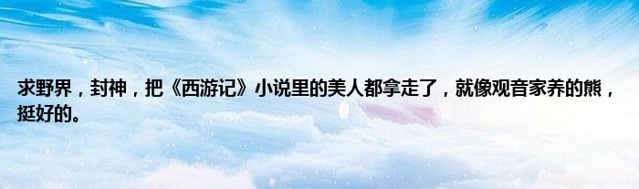 大家好,小常来为大家解答以上问题。求野界,封神,把《西游记》小说里的美人都拿走了,就像观音家养的熊,挺好的。很多人还不知道,现在让我们一起来看看吧!