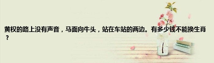大家好,小常来为大家解答以上问题。黄权的路上没有声音,马面向牛头,站在车站的两边。有多少钱不能换生肖?很多人还不知道,现在让我们一起来看看吧!