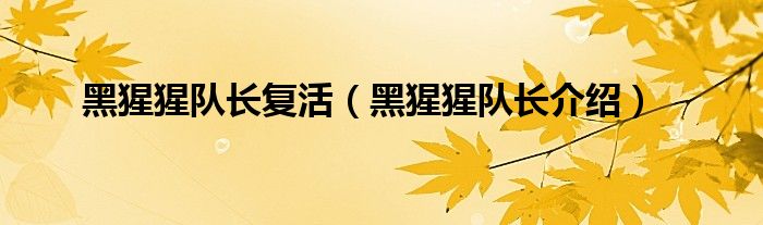 大家好,小常来为大家解答以上问题。黑猩猩队长复活,黑猩猩队长介绍很多人还不知道,现在让我们一起来看看吧!