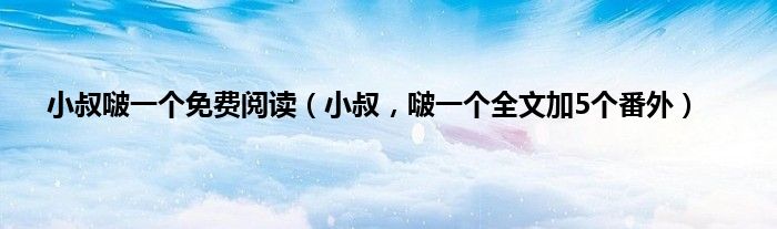 大家好,小常来为大家解答以上问题。小叔啵一个免费阅读,小叔,啵一个全文加5个番外很多人还不知道,现在让我们一起来看看吧!
