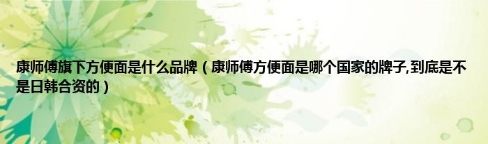 大家好,小常来为大家解答以上问题。康师傅旗下方便面是什么品牌,康师傅方便面是哪个国家的牌子,到底是不是日韩合资的很多人还不知道,现在让我们一起来看看吧!