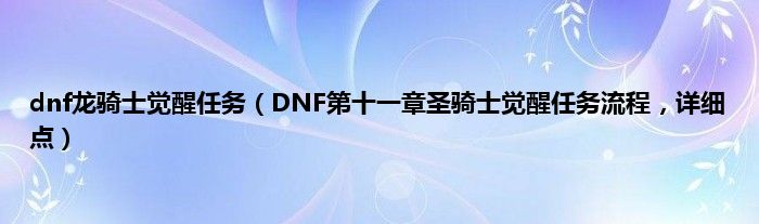 大家好,小常来为大家解答以上问题。dnf龙骑士觉醒任务,DNF第十一章圣骑士觉醒任务流程,详细点很多人还不知道,现在让我们一起来看看吧!