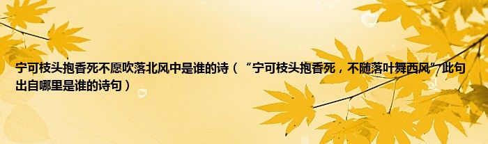 宁可枝头抱香死不愿吹落北风中是谁的诗(“宁可枝头抱香死,不随落叶舞西风”此句出自...
