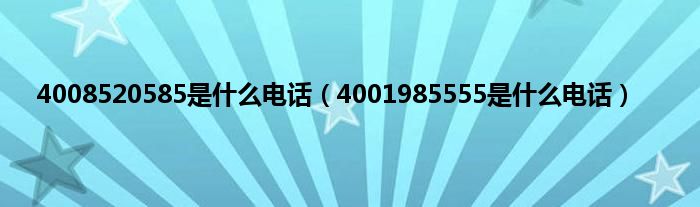 大家好,小常来为大家解答以上问题。4008520585是什么电话,4001985555是什么电话很多人还不知道,现在让我们一起来看看吧!