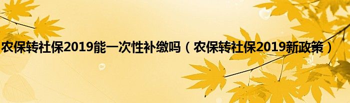 大家好,小常来为大家解答以上问题。农保转社保2019能一次性补缴吗,农保转社保2019新政策很多人还不知道,现在让我们一起来看看吧!